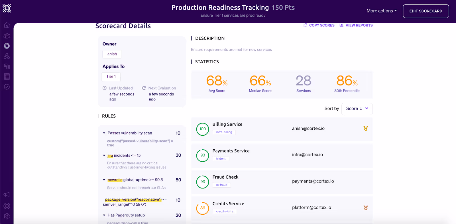 Automated Scorecards: Cortex's automated scorecards ensure that as you migrate and refactor your applications, they adhere to best practices and maintain high quality. This is particularly useful when adopting cloud-native architectures.