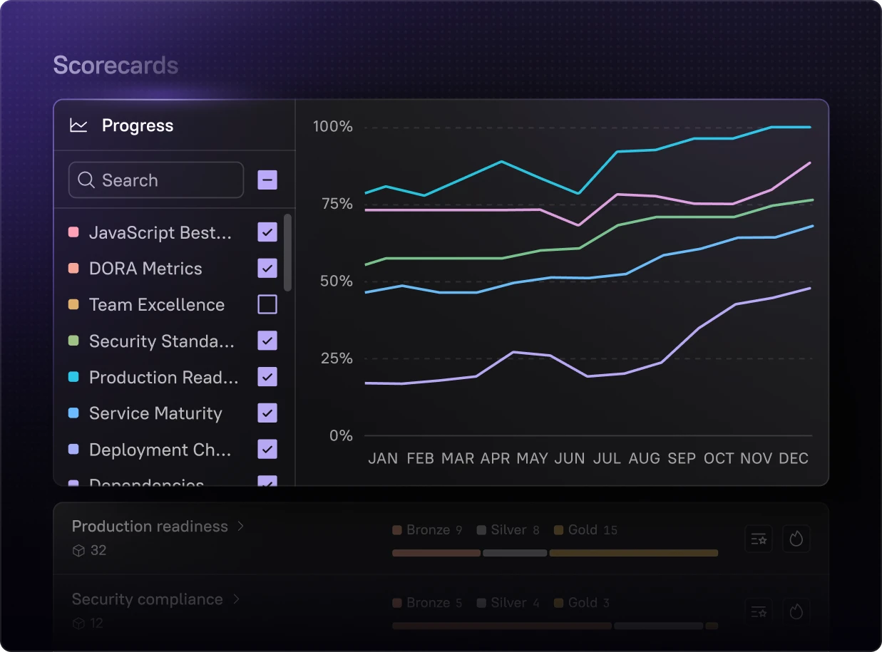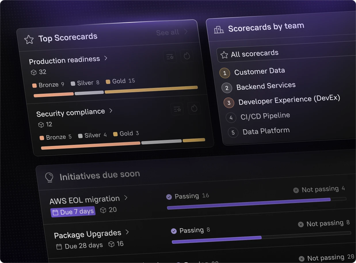 With real-time visibility into Scorecard compliance, open incidents, and active initiatives, managers can understand what’s on track – and what isn’t – without chasing down updates. Cortex rolls up metrics across team hierarchies so nothing slips through the cracks.