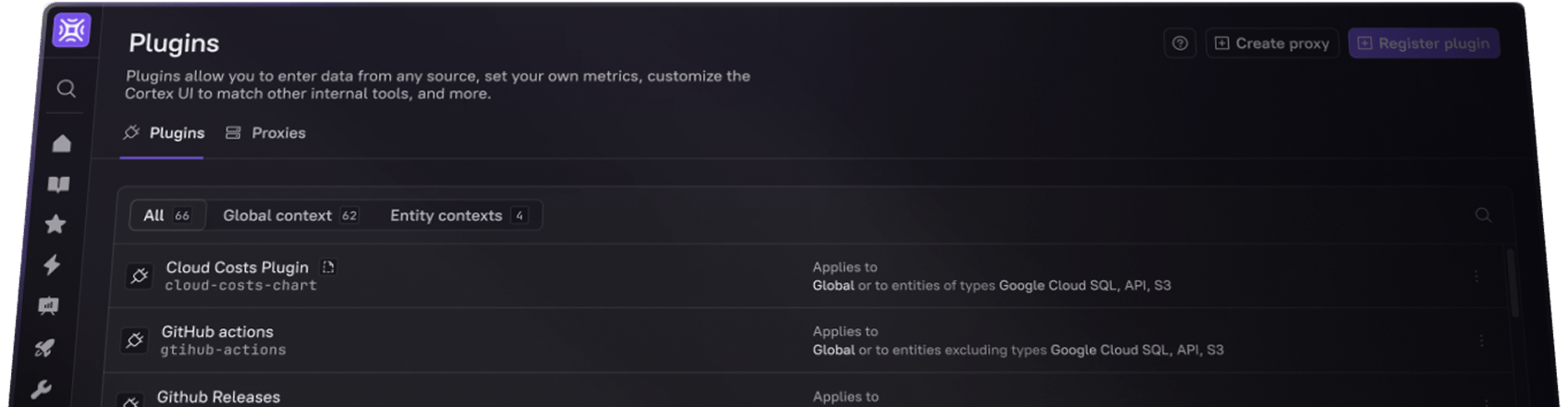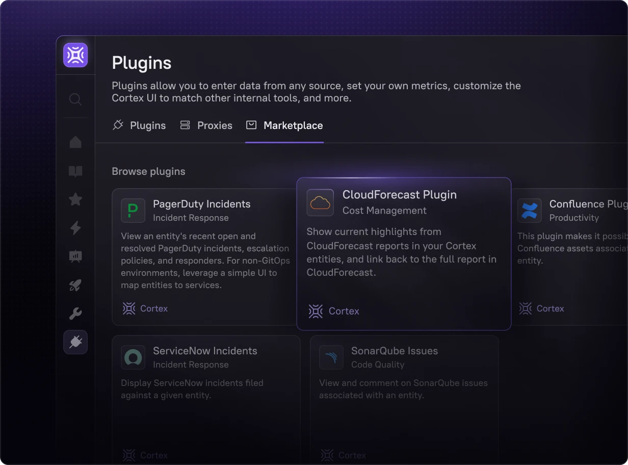 Integrate homegrown tools, third-party systems, or new services. Axon and Plugins keep Cortex adaptable for any stack, now and in the future.