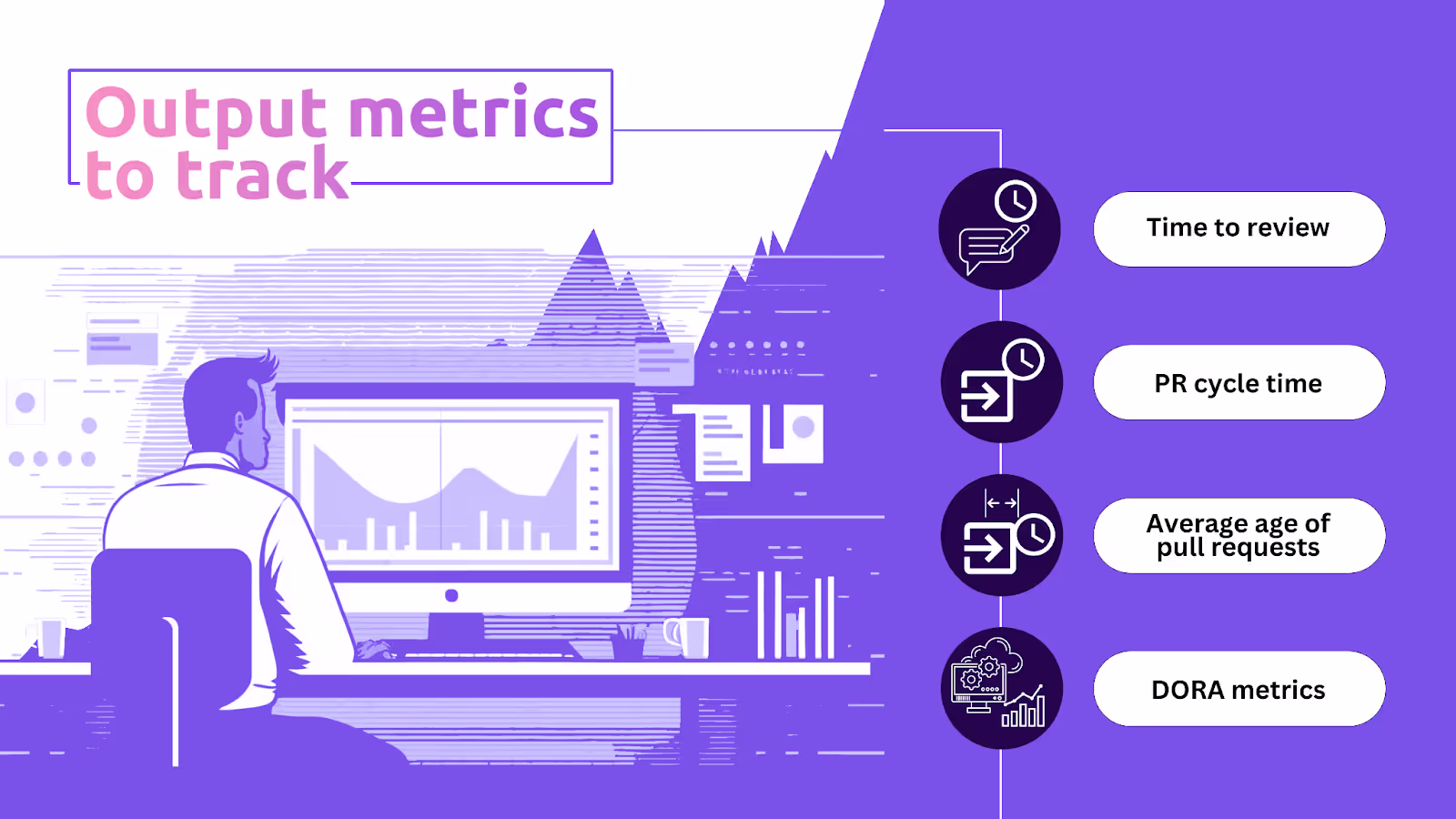 Output metrics directly track the productivity of software development processes. They are used to measure the pace and quality at which various development-related tasks like debugging, code reviews, and deployment are executed. Like input metrics, it is always best to track those output metrics that provide the most visibility and insight into the development processes undertaken at an organization.