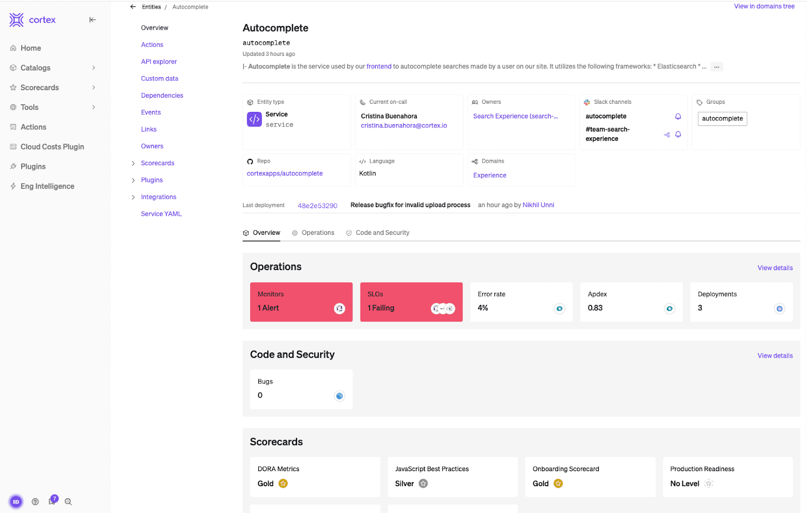 Actionable insights that gamify software excellence (Cortex Scorecards)