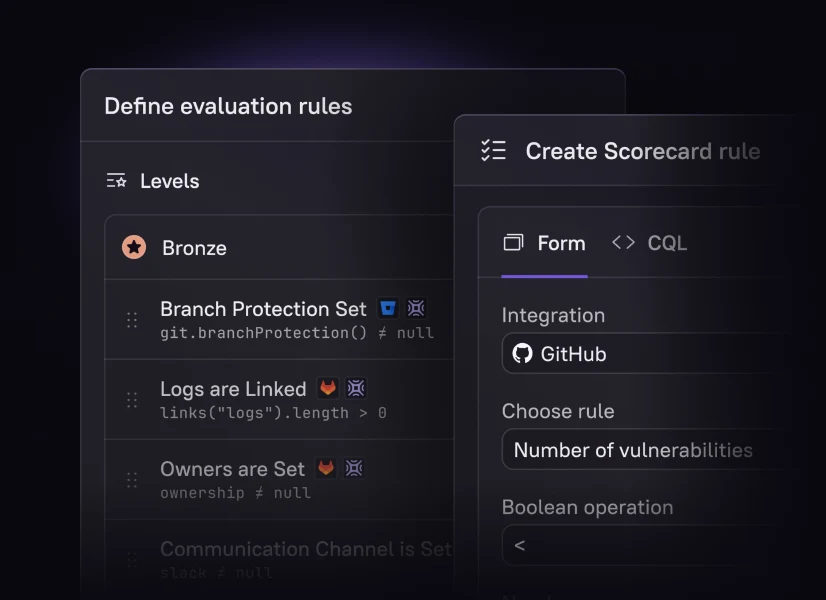 Build any Scorecard in minutes – from production readiness to security compliance to AI maturity. With data pulled automatically from your existing tools, it’s easy to define standards, track progress, and drive improvement across teams.