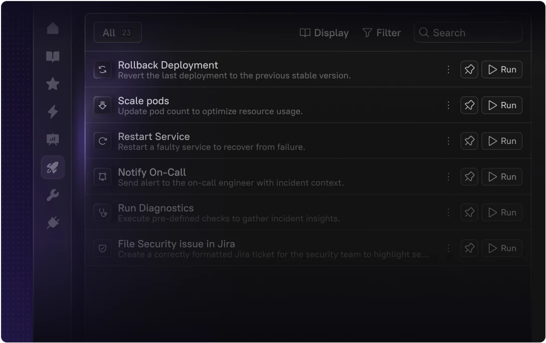 Enable engineers to self-serve common incident tasks, including rollback deployments, scaling pods, or coordinating response steps, with clear approvals and context.