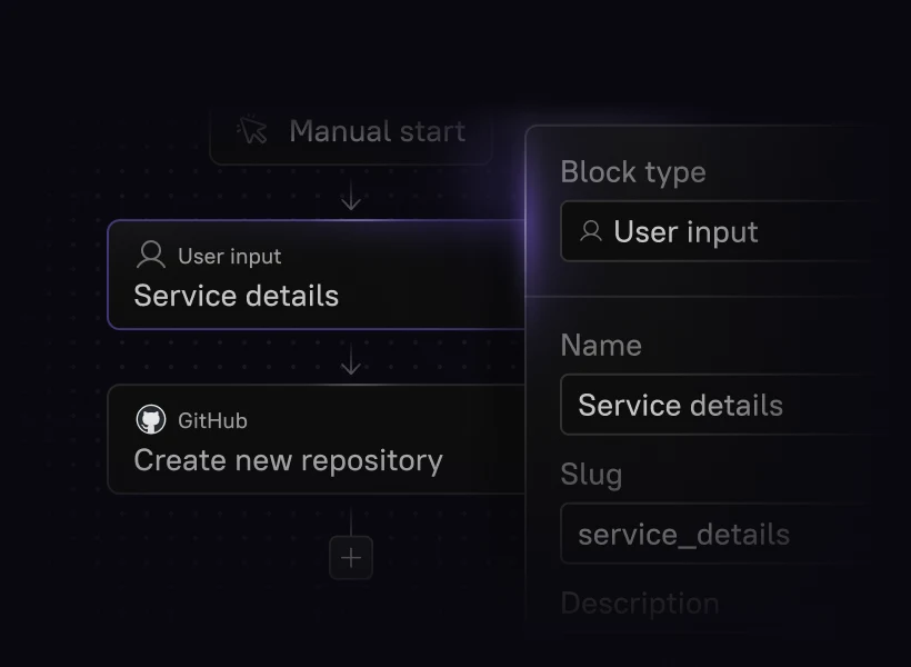 Cortex Workflows enable developers to follow golden paths for creating new services, onboarding infrastructure, requesting resources, and more. By standardizing complex workflows across teams and tools, Cortex increases developer velocity and efficiency while ensuring best practices every time.