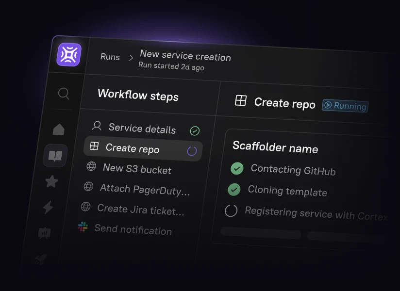 From spinning up new services to managing infrastructure and incident response, Cortex Workflows give your teams the power to turn best practices into repeatable, self-service golden paths – no bottlenecks, no guesswork.