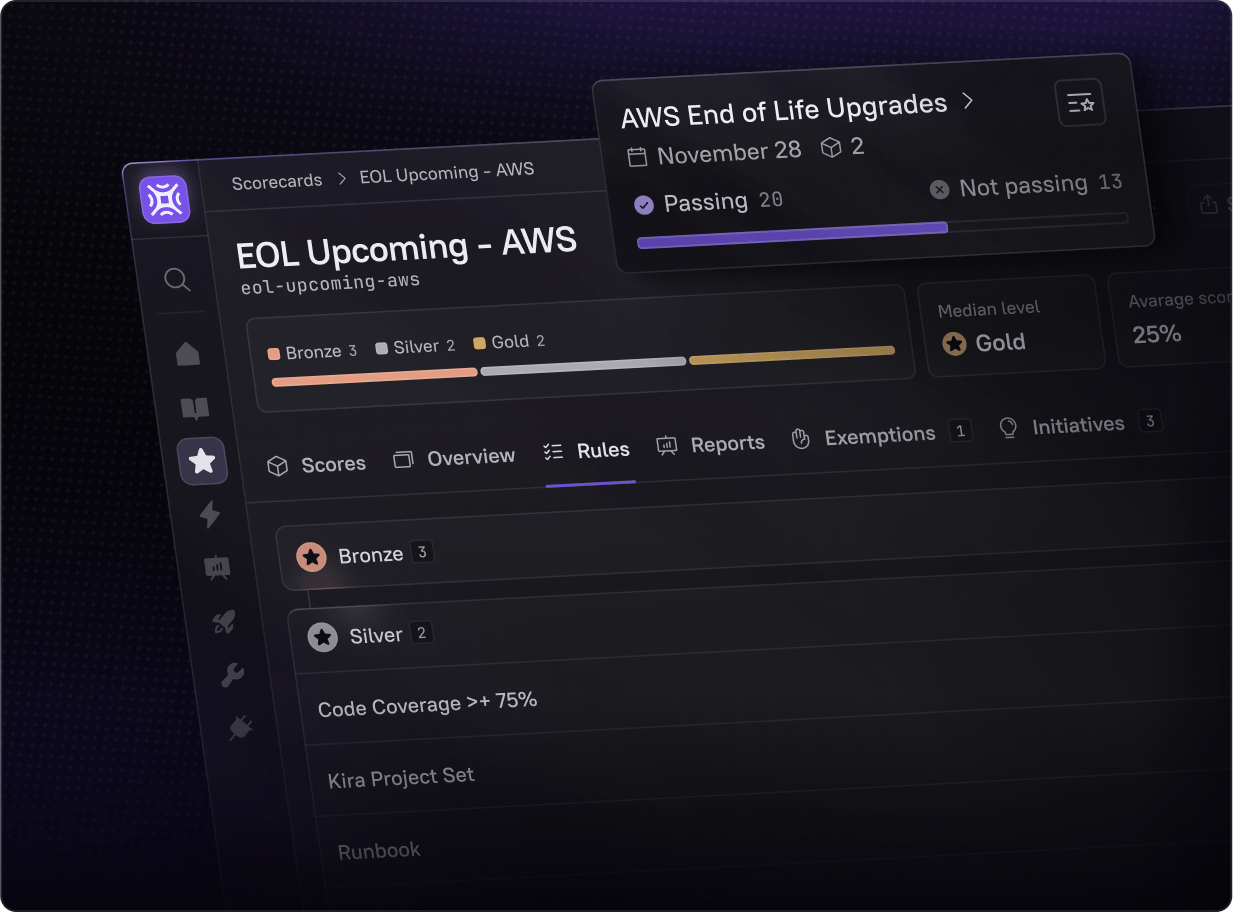 Establish and enforce standards like production readiness, operational maturity, and security posture with Scorecards.