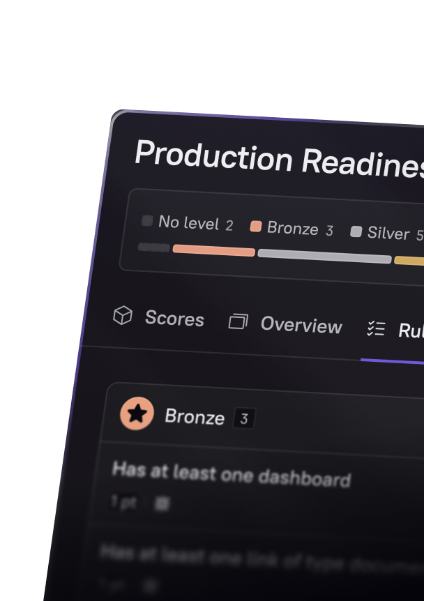Automate readiness checks and incident reviews to ensure systems are always production-ready. With AI-driven insights, Cortex helps you predict risks before they impact uptime and measure reliability across teams at scale.