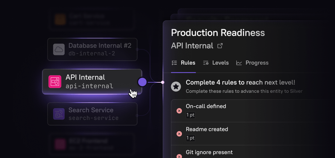 Every service is continuously scored against your standards, gaps are surfaced automatically, and teams fix issues before they become incidents.