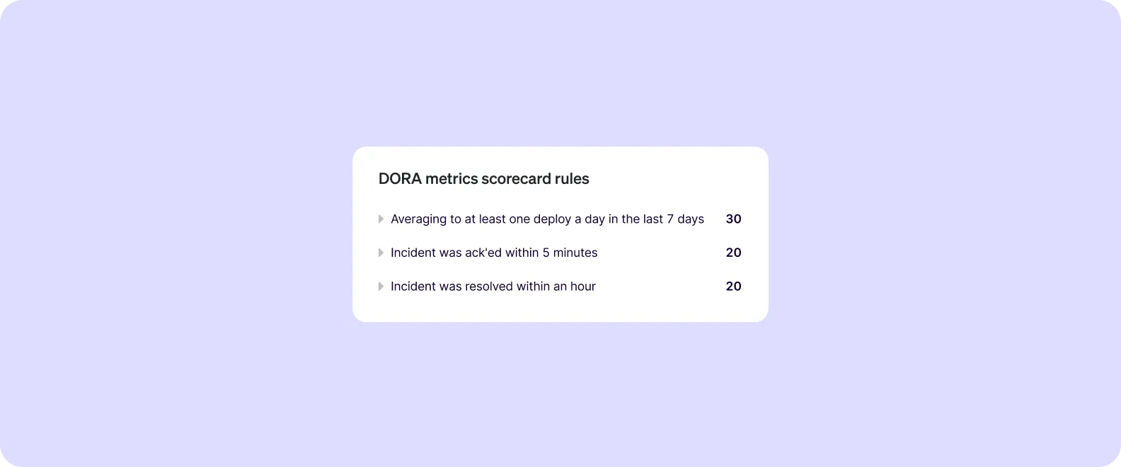 Scorecards offer an easy way to codify standards as a set of rules and measure all of your services against them. At a glance, you can see exactly where a service is or is not in compliance. Gamification is built into Scorecards with Levels, so teams can quickly understand what the highest priority rules are, making it even easier to drive progress on the most important standards.