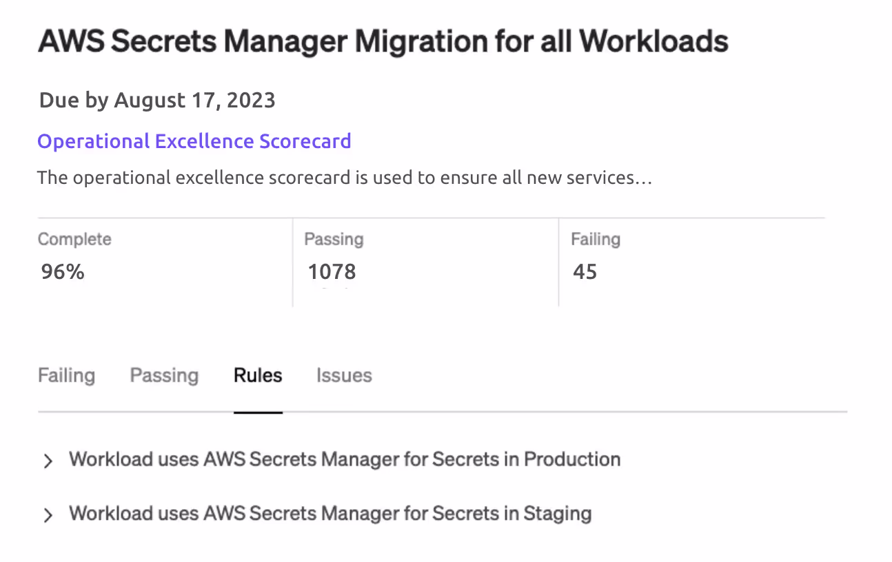 Scorecards: With Cortex Scorecards, you can designate migration details, and keep teams accountable in a way the entire organization can track. You can also set exemptions and target only those users that need to take action. Customers who use Cortex Scorecards for their migration use cases see significantly shorter timelines to full compliance.
