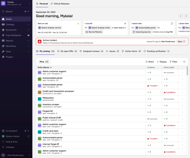 With accurate service ownership data at its core, Cortex ensures that incident alerts are pushed directly to the right team. This means that as soon as an incident is detected, the alert appears on the responsible team’s developer homepage, ensuring that the correct stakeholders are notified immediately. By minimizing the manual effort to identify who needs to take action, reduce delays and speed up response times.