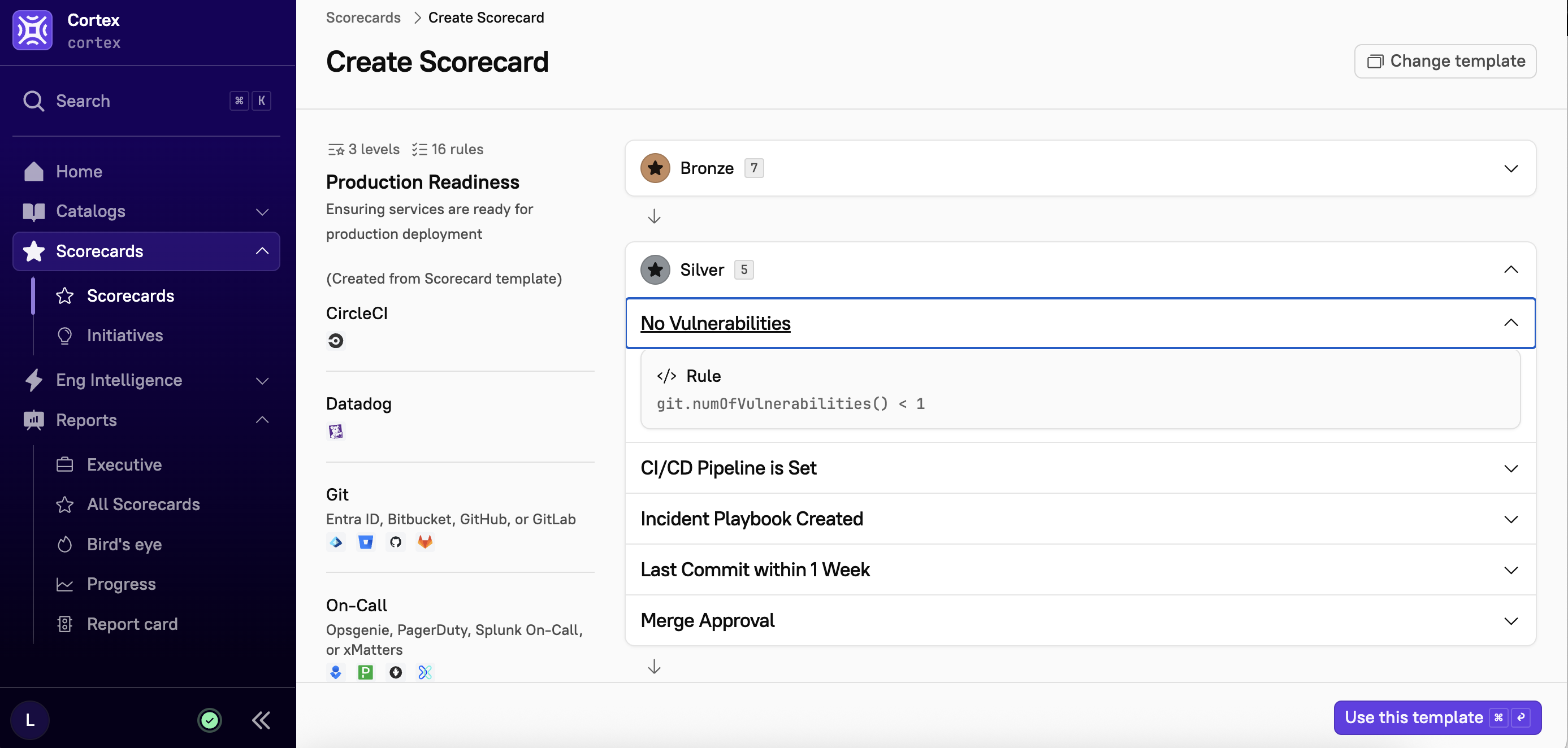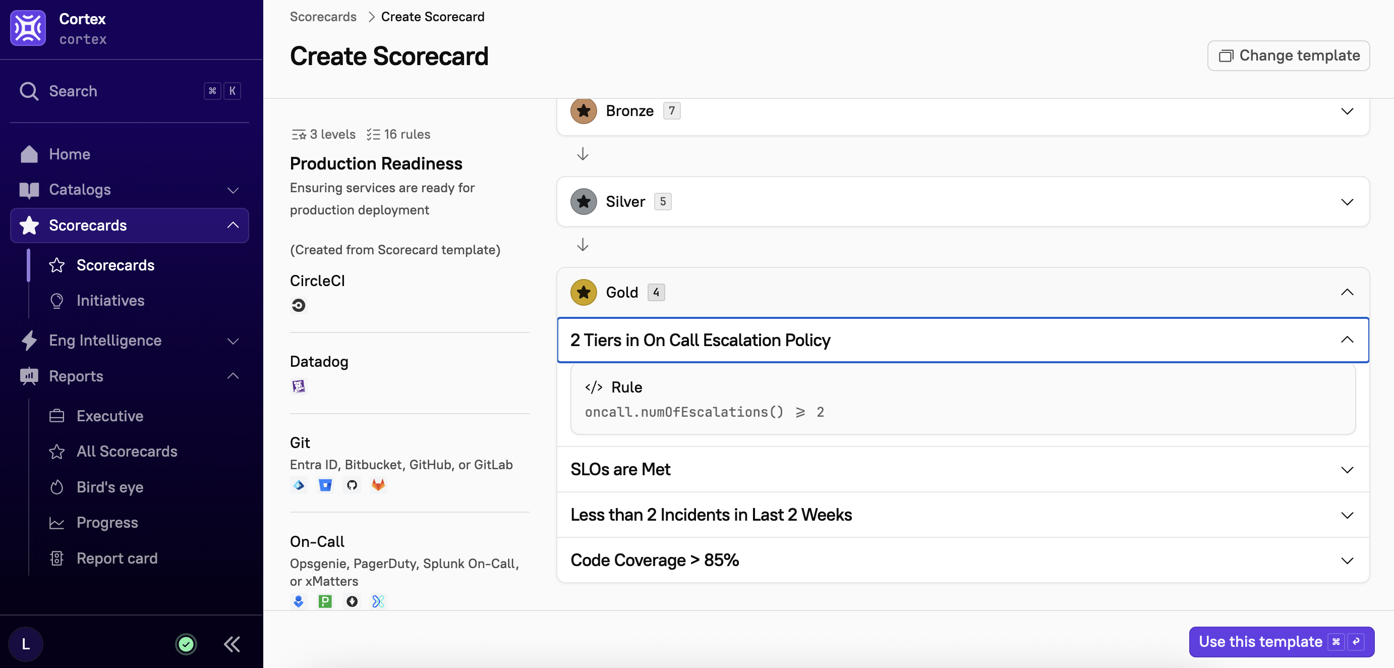 Cortex customers: Visit the Cortex app to explore and clone the Production Readiness Scorecard template.