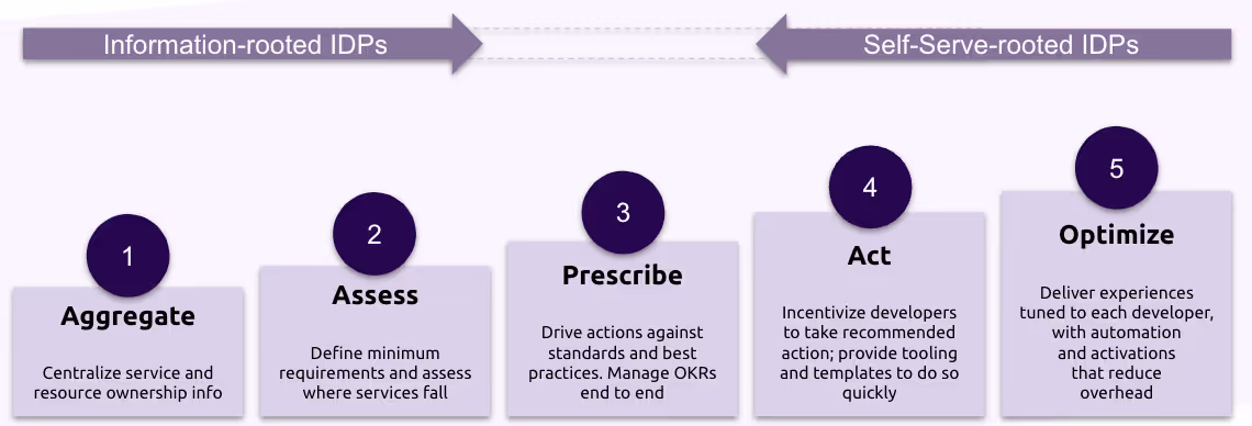 We predict the IDP space will continue to expand dramatically over the next 5 years, with new players and niche offerings focused on improving developer experience. At the center of this activity we expect to find this same engineering maturity curve—serving as the new baseline for IDPs wanting to accelerate both product development and customer onboarding.