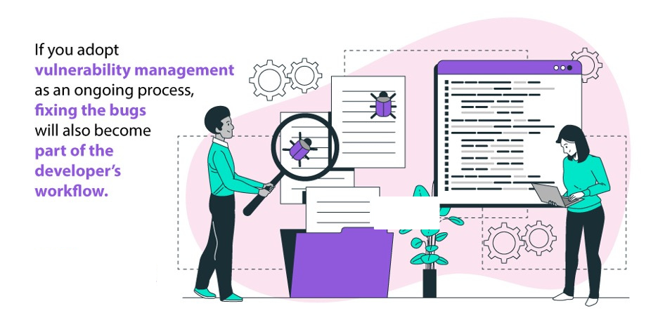 If you adopt vulnerability management as an ongoing process, fixing the bugs will also become part of the developer’s workflow. It will be easier for the developer to come up with solutions while the code is still fresh in their mind. Furthermore, you can rest easy knowing that any new vulnerabilities that surface are being tackled on time and that these solutions contribute to keeping your software up-to-date.
