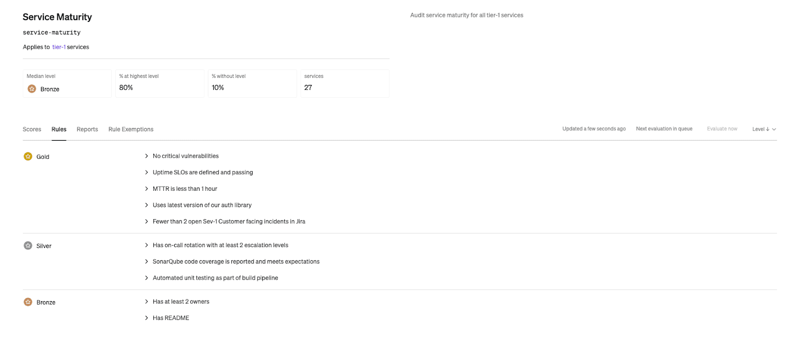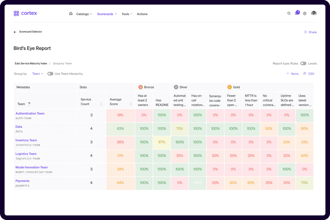 Bird's Eye Report of a Service Maturity Scorecard in Cortex