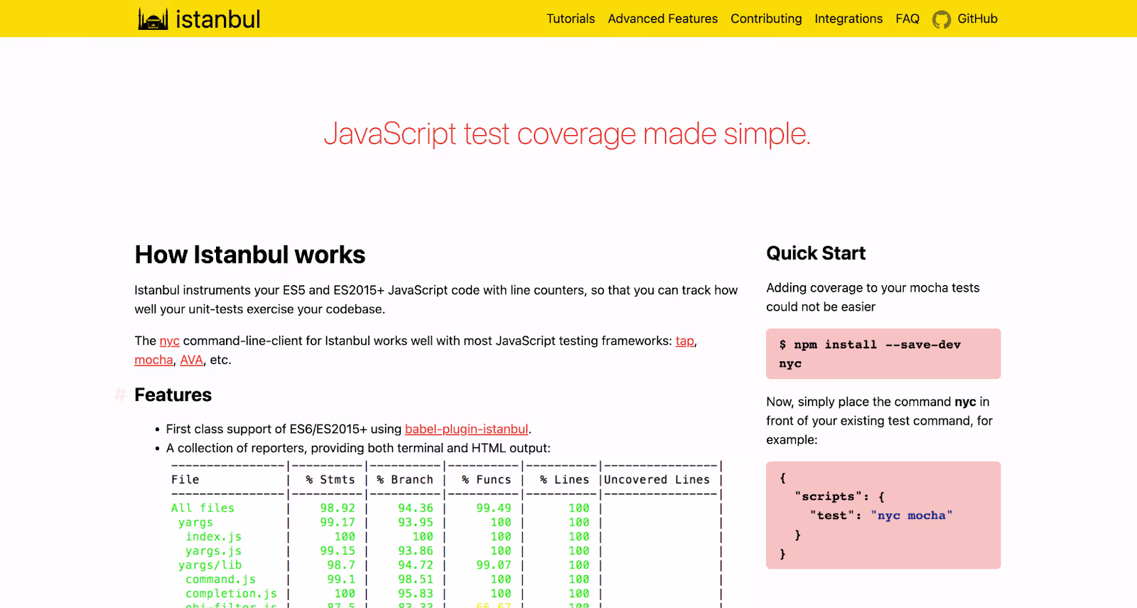 Its command line client, nyc, is compatible with a range of testing frameworks such as mocha, AVA, and tap. Additionally, it generates coverage reports, which are available in HTML and LCOV formats inside a coverage folder in the project environment.