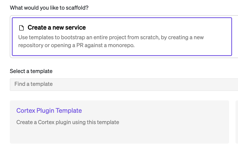 Cortex makes it easy to spin up a new plugin repository using the Scaffolder tool. This template is already available for use in Cortex and spins up a new repository with a basic setup for each.