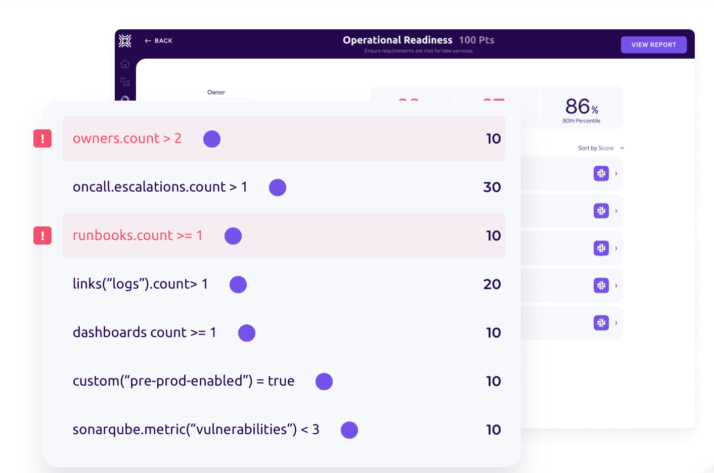 Although encouraging teams to make changes in how they work can be difficult, the scorecards are customizable and automate the process to give leaders a hassle-free experience in that regard. They can enforce the idea that every microservice must be accompanied by its API documentation and encourage the adoption of API-first development across the board.