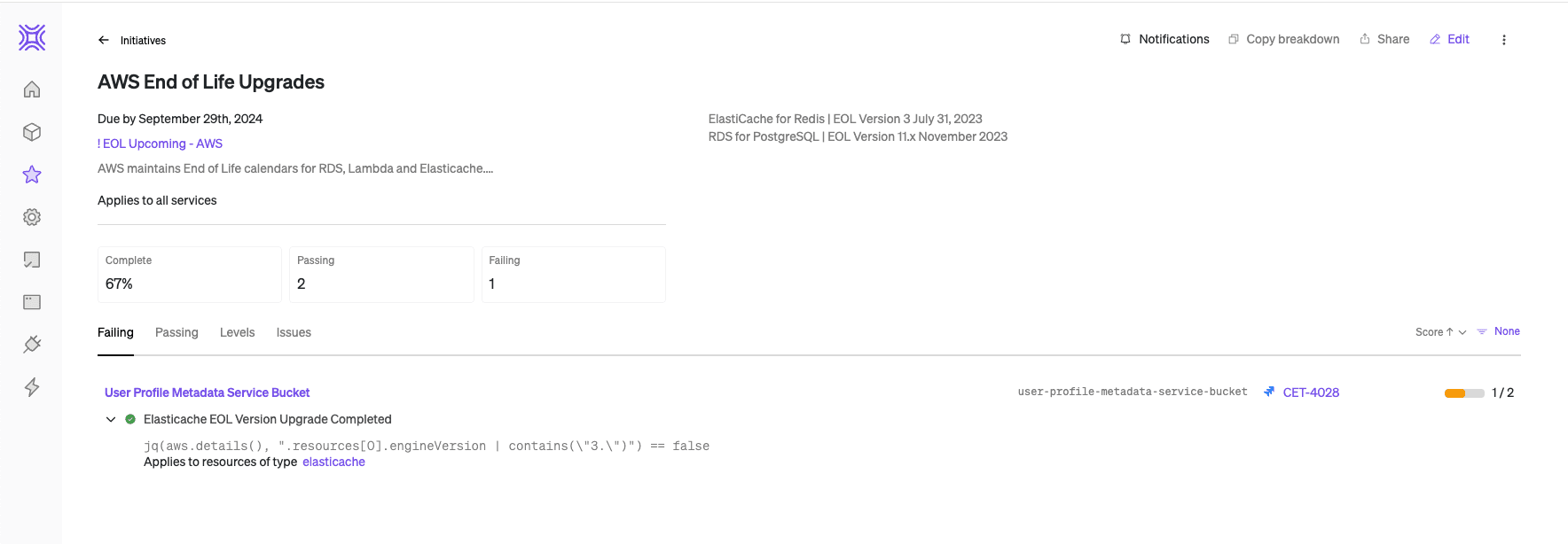 Cortex’s IDP empowers engineering teams to create initiatives and scorecards as part of their projects to prepare for audits and establish ongoing compliance practices. By taking input from IT, security, and other stakeholders, the IDP ensures that compliance is easily measured, tracked, and reported on. This proactive approach allows organizations to stay ahead of regulatory requirements and avoid the stress and last-minute scrambles often associated with audits.
