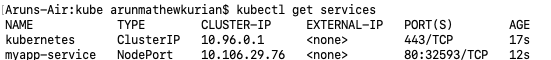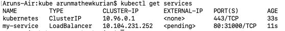 You can see that since I am using Minikube the value of the external IP is shown as <pending>. However, in an actual cloud setup, the IP will be generated and can be used to access the application. This is the IP that can be used by our users to access our web app from the internet.</pending>