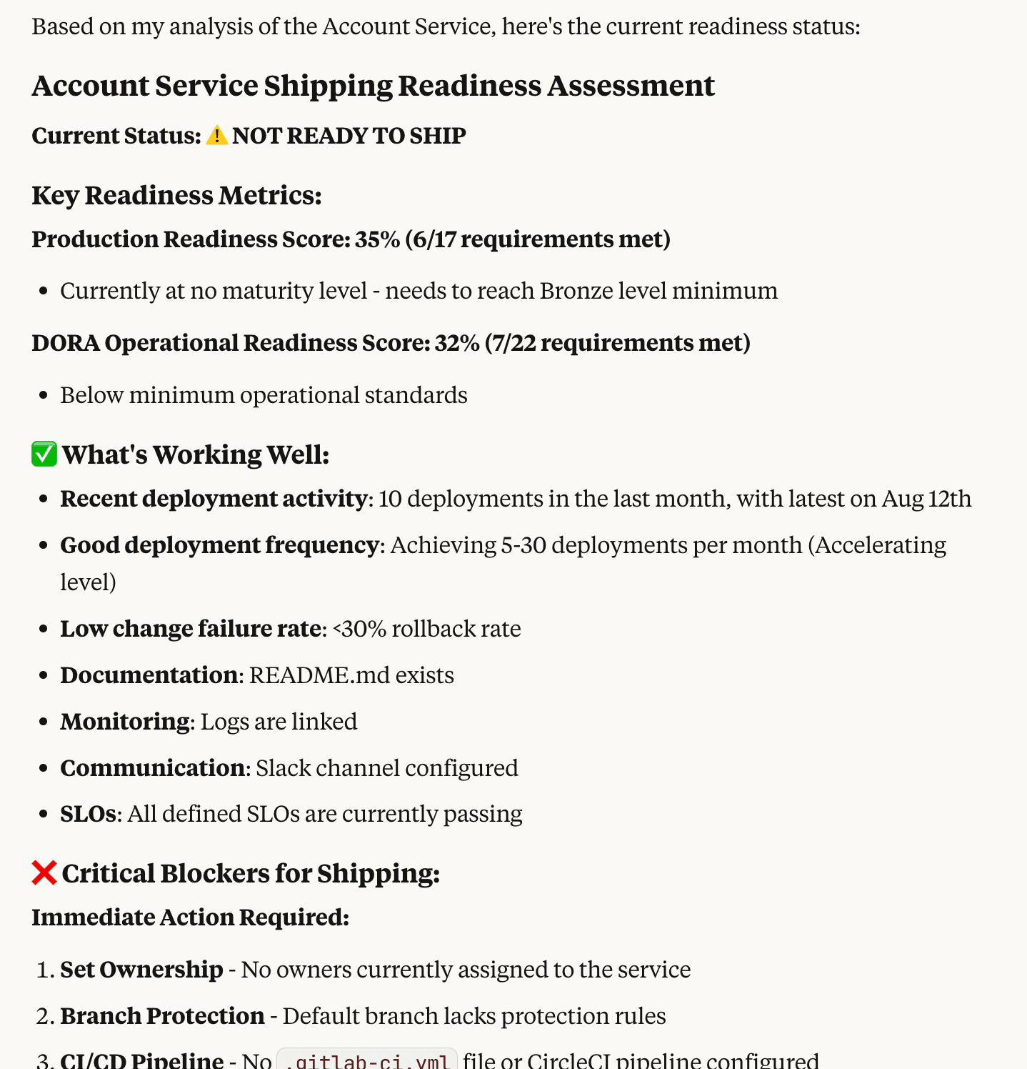 If you have production readiness scorecards setup, confirm if your services are ready to handle a launch or spike in traffic.