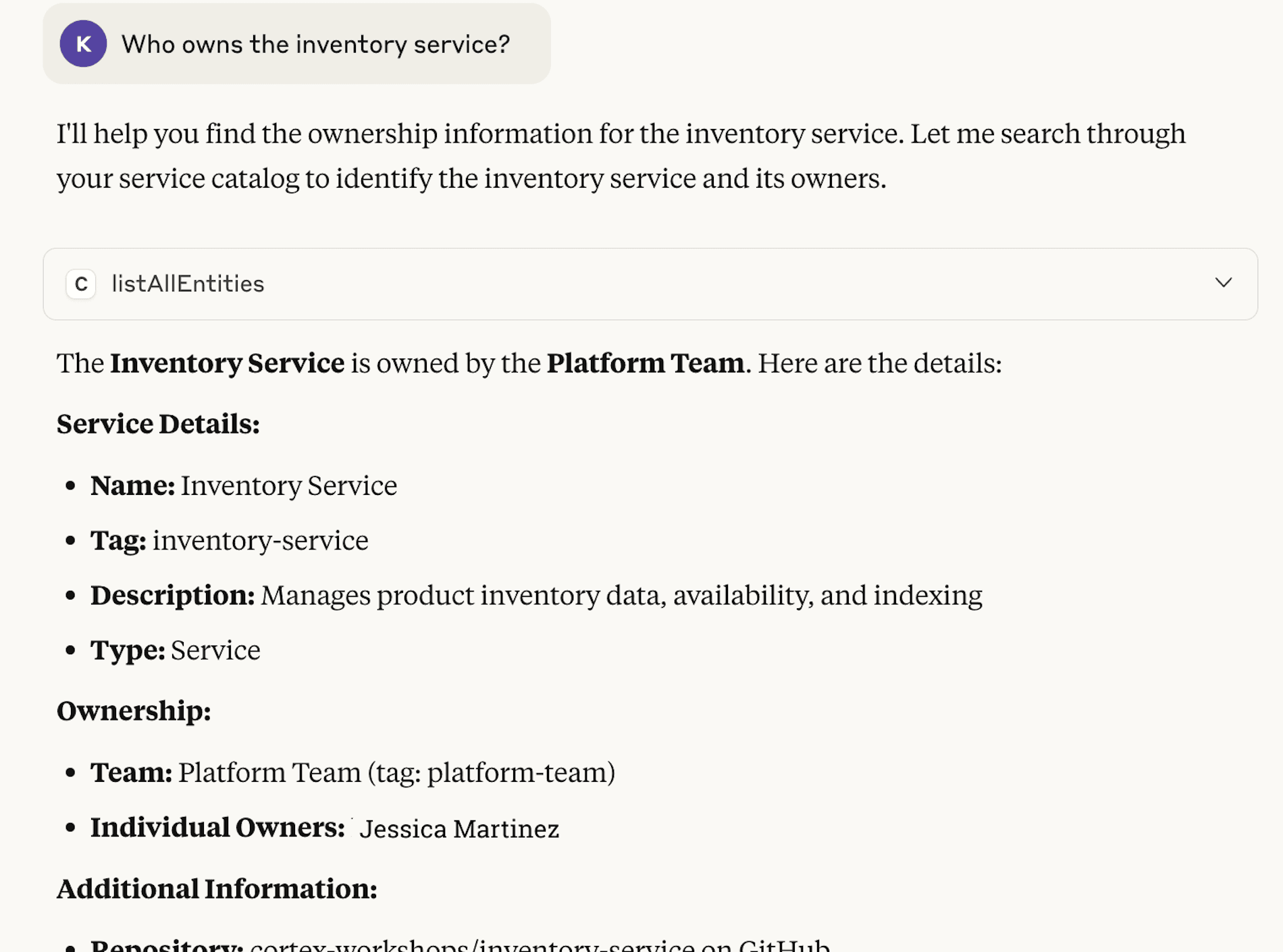 If you’ve already installed the Cortex MCP, share this list with your engineering team to get more value out of your AI. And if you’re not using it yet, all you need is 4 minutes to set it up and your AI assistant will instantly be able to surface the exact service owner, incident history, or readiness status you need without breaking your flow.