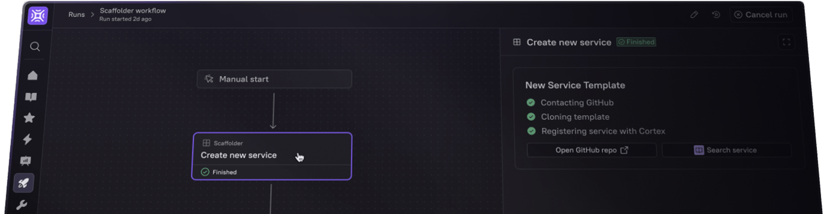 From spinning up new services to managing infrastructure and incident response, Cortex Workflows give your teams the power to turn best practices into repeatable, self-service golden paths – no bottlenecks, no guesswork.