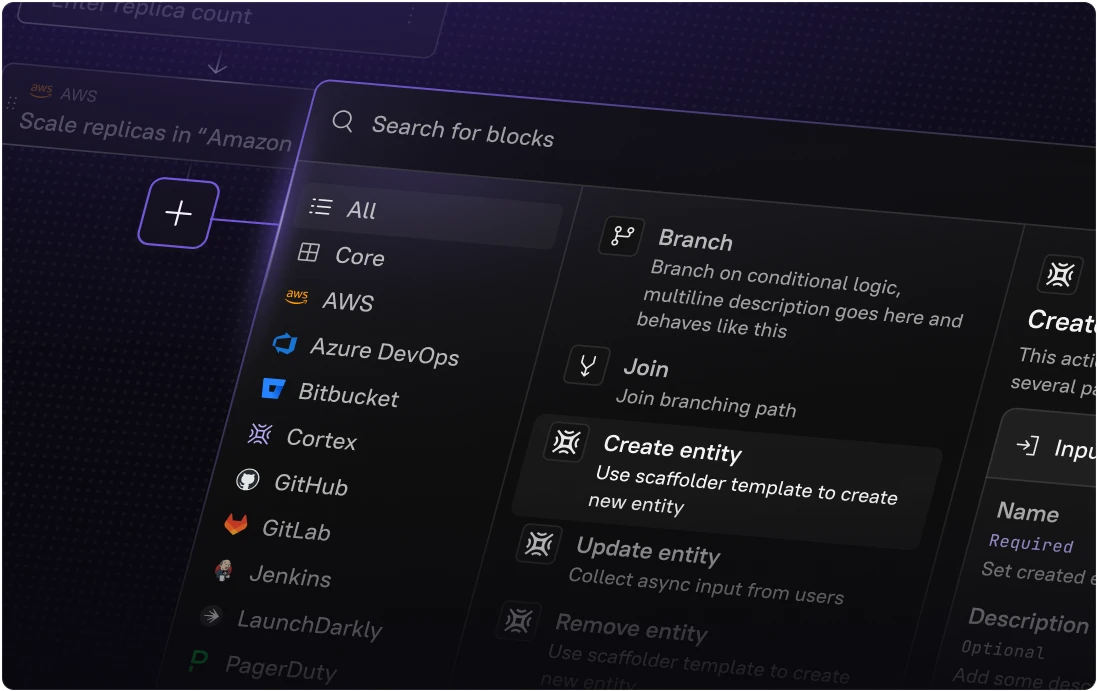 Create and spin up new services based on approved templates that enforce standards from day one – automatically cataloged, owned, and visible across your engineering organization.