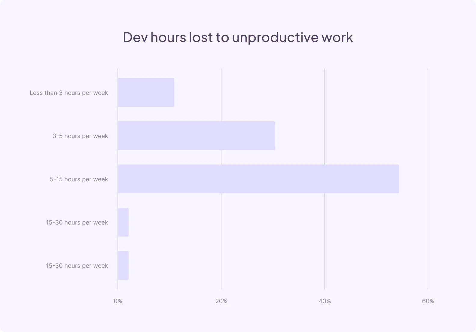 58% of respondents say more than 5 hours per developer per week are lost to unproductive work.